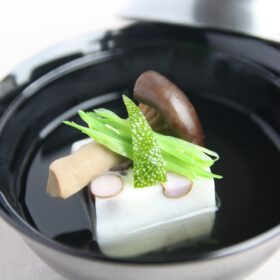 秋のお献立 先付・・昆布麺美味出汁、葛豆腐、生姜 前菜・・秋茄子と鰻.山葵、海老萩ちらし、百合根キャビア、鱚落葉揚げ、銀杏松葉、玉子カステラ、魳小袖寿…